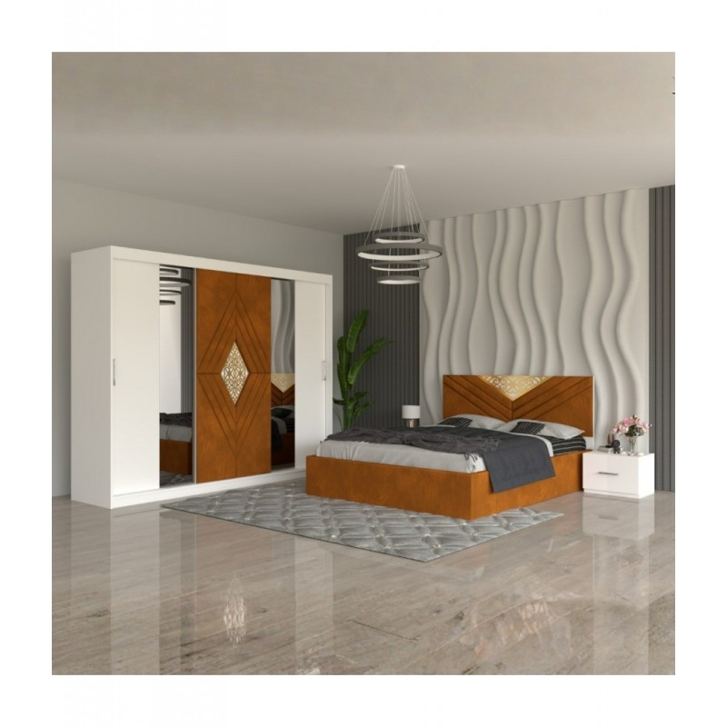 Setul Dormitor Imperial Caramiziu aduce căldură şi stil în dormitorul tău: finisaj cărămiziu distinct, pat disponibil în dimensiuni variate (140×200, 160×200, 180×200 cm) şi dulap spaţios cu uşi glisante înălţime ~200 cm. Design modern, ideal pentru un spaţiu de relaxare complet.