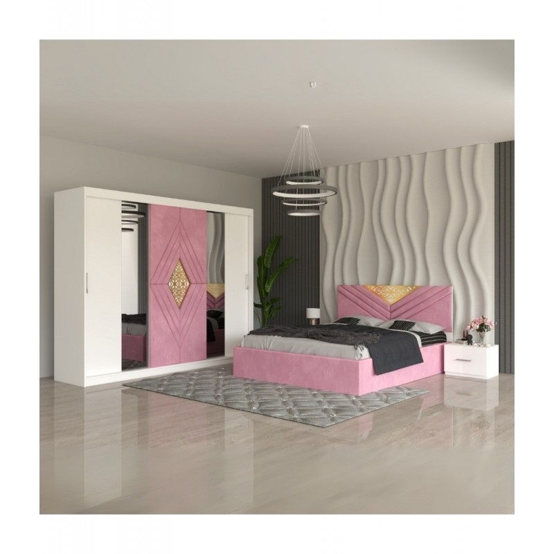 Îmbracă‑ţi dormitorul într‑un stil vibrant cu Dormitorul Imperial Roz, un set complet care combină cromatica intensă cu funcționalitatea completă. Finisajul în nuanţe Roz adaugă o notă de rafinament şi originalitate spațiului, transformând camera într‑un loc plăcut pentru odihnă. Patul este disponibil în dimensiunile 140×200 cm, 160×200 cm sau 180×200 cm, adaptându‑se nevoilor tale. Dulapul generos, cu lăţime de aproximativ 250 cm şi înălţime de 200 cm, oferă spaţiu amplu pentru haine, accesorii şi organizare, în timp ce noptierele asortate completează ansamblul din punct de vedere estetic şi practic.