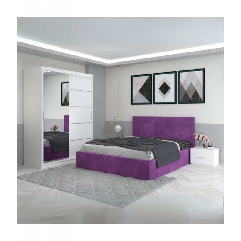 Setul „Imperial Mov” aduce personalitate şi eleganţă în dormitorul tau: finisaj violet‑mov sofisticat, pat disponibil în dimensiuni 140×200, 160×200 sau 180×200 cm, plus dulap larg (250×200 cm) şi noptiere asortate. Designul modern, cu accente de culoare aparte, este ideal pentru un ambient contemporan și armonios.