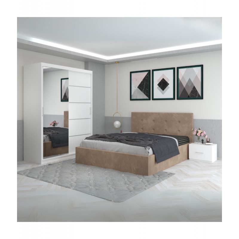 Designul modern cu linii clare, combinat cu finisajul crem, îl face potrivit atât pentru decoruri contemporane, cât şi pentru ambienturi mai calde şi sofisticate. Materialele de calitate şi tapiţeria bine executată conferă durabilitate şi comoditate. Alege acest set dacă vrei o soluţie completă – pat, dulap, noptiere – gândită pentru a transforma dormitorul într‑un sanctuar de relaxare cu stil.