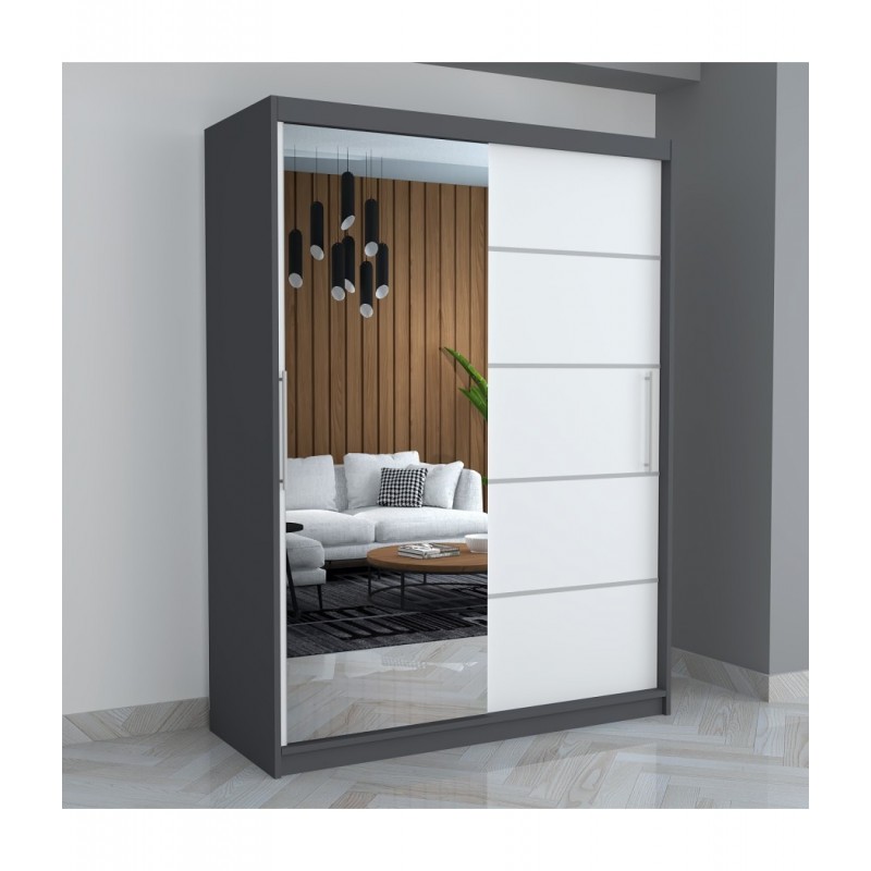 Dressing A01 te întâmpină cu un finisaj elegant gri şi dimensiuni compacte (150 cm lăţime, 200 cm înălţime, 60 cm adâncime) — perfect pentru organizarea hainelor şi accesoriilor într‑un spaţiu ordonat. Designul simplu, dar practic, se potriveşte cu uşurinţă în dormitor sau dressing‑room.